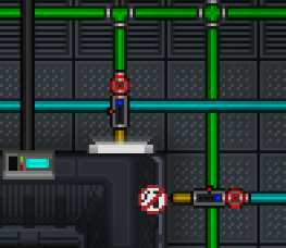 The two waste line regulators can be used to prevent loop overpressure by automatically discharging gas above a set limit (using the input pressure setting). Be careful with such a setting; generally, coolant loops become overpressured because they are overheating, and if said coolant is then dumped without solving the underlying cause, the consequence is a runaway overheat-pressure dump spiral. Further, remember that all dumped gas goes to the waste tank — if you put a lot of hydrogen, phoron and oxygen in there, it can catch fire and that may result in unfortunate consequences for the tank and anyone near its thin walls.
